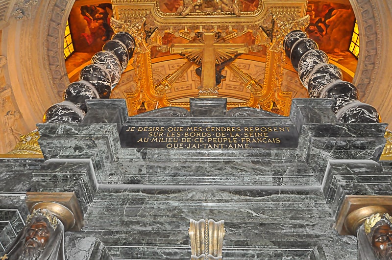Найвідомішою гробницею в Будинку Інвалідів є гробниця Наполеона Бонапарта. Спочатку Наполеон був похований на острові Святої Єлени, однак король Луї Філіп організував перенесення його останків в церкву Святого Жерома в Парижі в 1840 році. Будучи в даний час найпопулярнішою туристичною визначною пам'яткою, Будинок Інвалідів також є місцем поховання деяких членів сім'ї Наполеона, кількох військових офіцерів, які служили під його керівництвом, та інших військових героїв Франції: Анрі Грас, генерала армії в період Першої Французької імперії, який супроводжував Наполеона на острів на Ельбі, а потім на острів Святої Олени, а потім привіз тіло Наполеона назад у Францію в 1840 році; Жозефа Бонапарта, старшого брата Наполеона; Наполеона II; Фердинанда Фоша, головнокомандувача союзників під час Першої світової; Філіпа Леклерка, одного з героїв Опору, а також інших воєначальників і державних діячів.