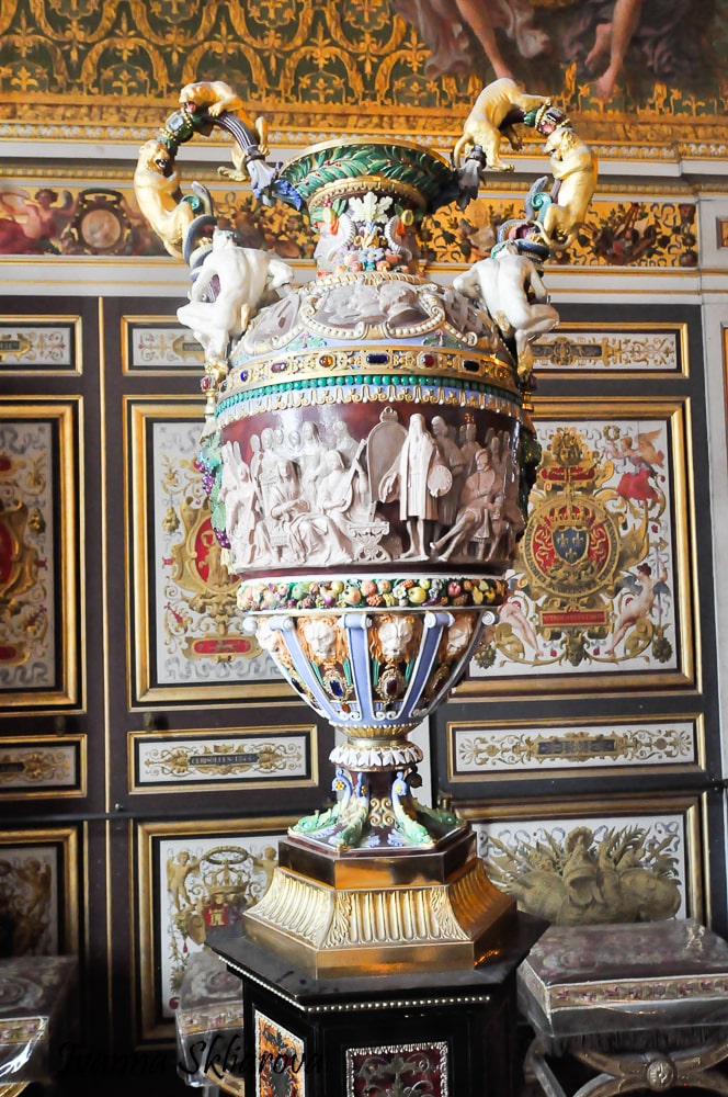 Мистецтво Фонтенбло середини XVI ст. для якого характерні особлива елегантність, поєднання живопису з декоративними фризами і складним різьбленням по гіпсу, що імітує кольоровий мармур. Художники першої школи Фонтенбло широко включали у свої полотна алегоричні і символічні фігури, що прославляють королів Франції. Ці розписи досі можна бачити на стінах монументальних парадних сходів, в танцювальному залі і королівській спальні, але краще всього вони збереглися в галереї Франциска I, створеною Россо Фіорентино між 1522 і 1540 рр.