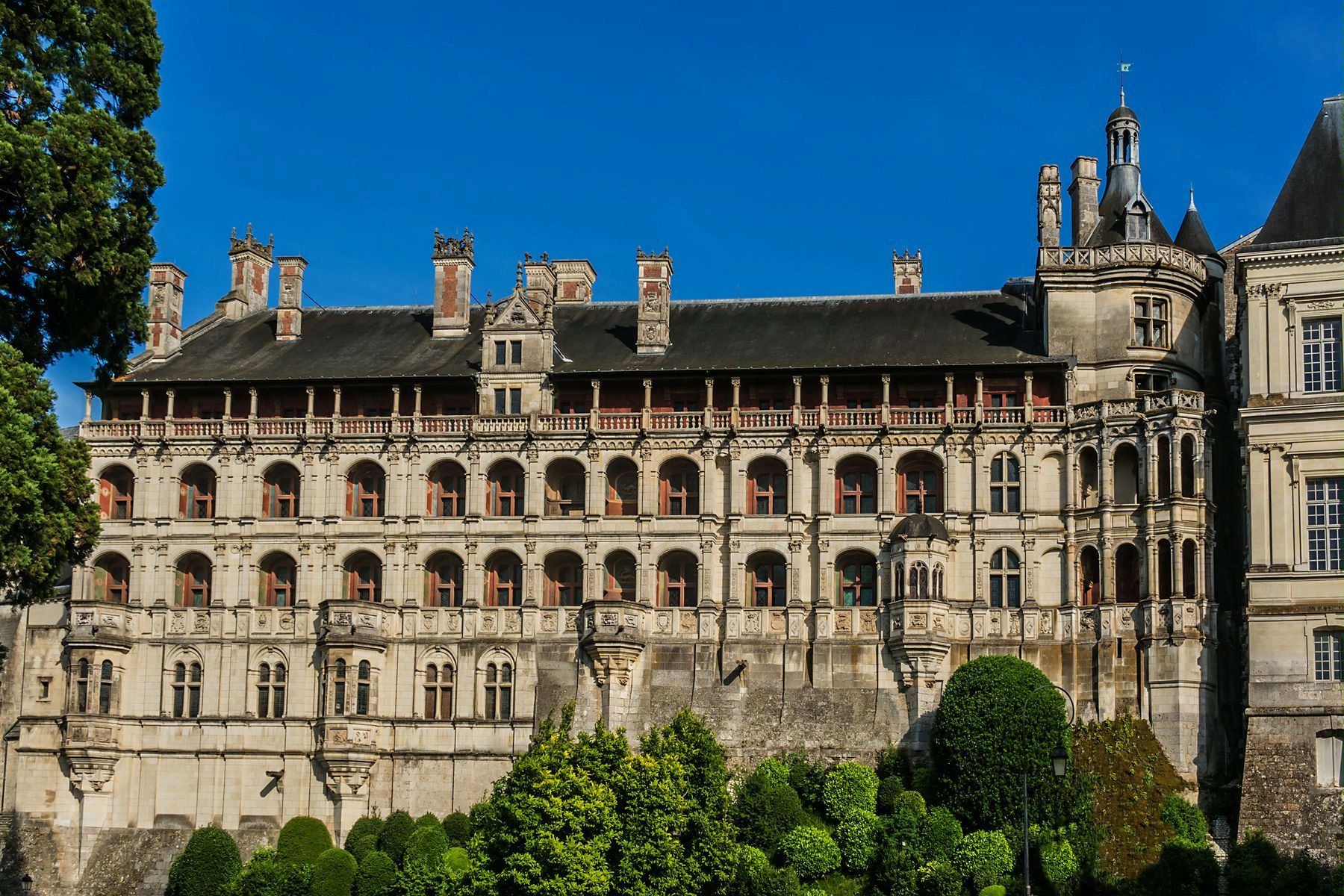 Замок розташований в місті Блуа і служив резиденцією багатьох французьких королів. Замок також відомий тим, що тут в 1429 році архієпископ Реймса благословив Жанну д'Арк на битву з англійцями. Замок складається з 564 кімнат, 100 з яких служили спальнями, при цьому в кожній кімнаті знаходиться камін. З 75 сходів користувалися тільки 23.