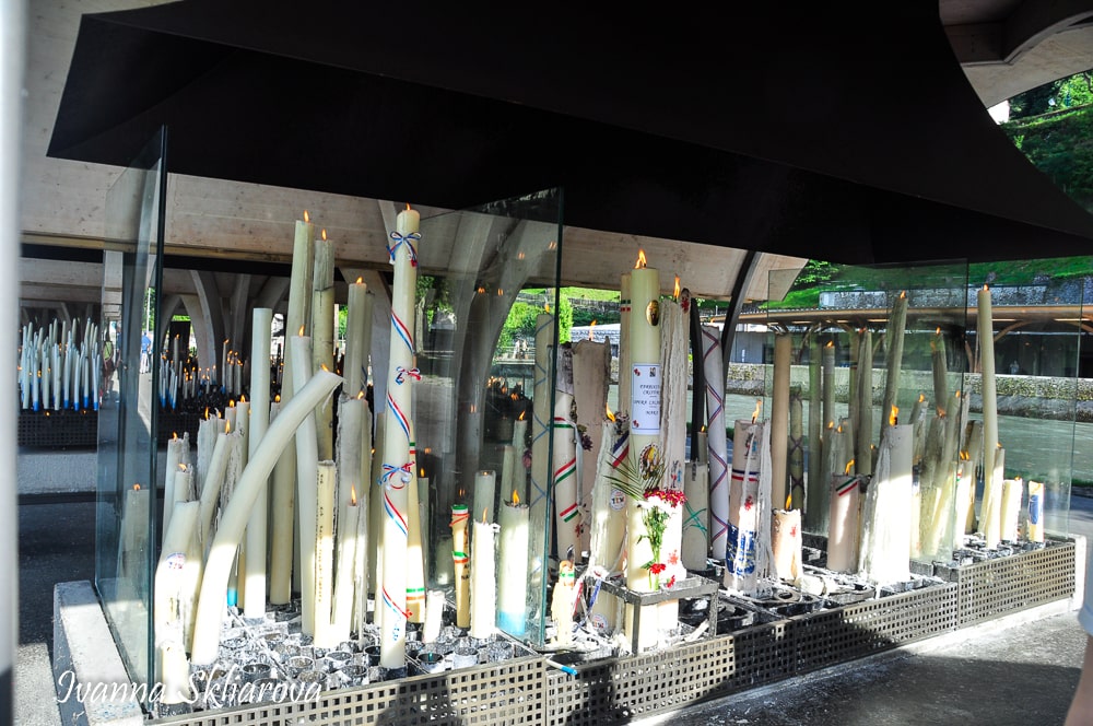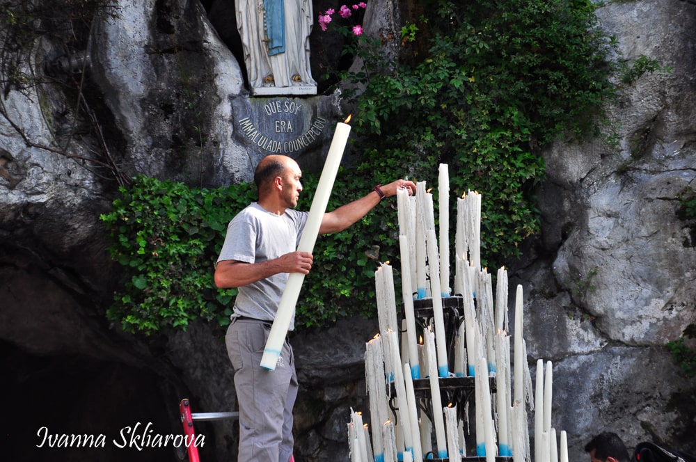 Поряд з печерою, мільйони свічок горять безперервно з 19 лютого 1858. Щороку, 700 тон свічок горять для усіх, а також і для тих, хто не може прийти. Вони розміщені в дерев'яні ящики біля входу на площу де-ла- Grotte, свічки бувають різних розмірів від 40г до 70 кг В Лурді працює цілий завод свічок "lourdaise Ciergerie", заснований в 1928 році і нараховує 30 працівників.
