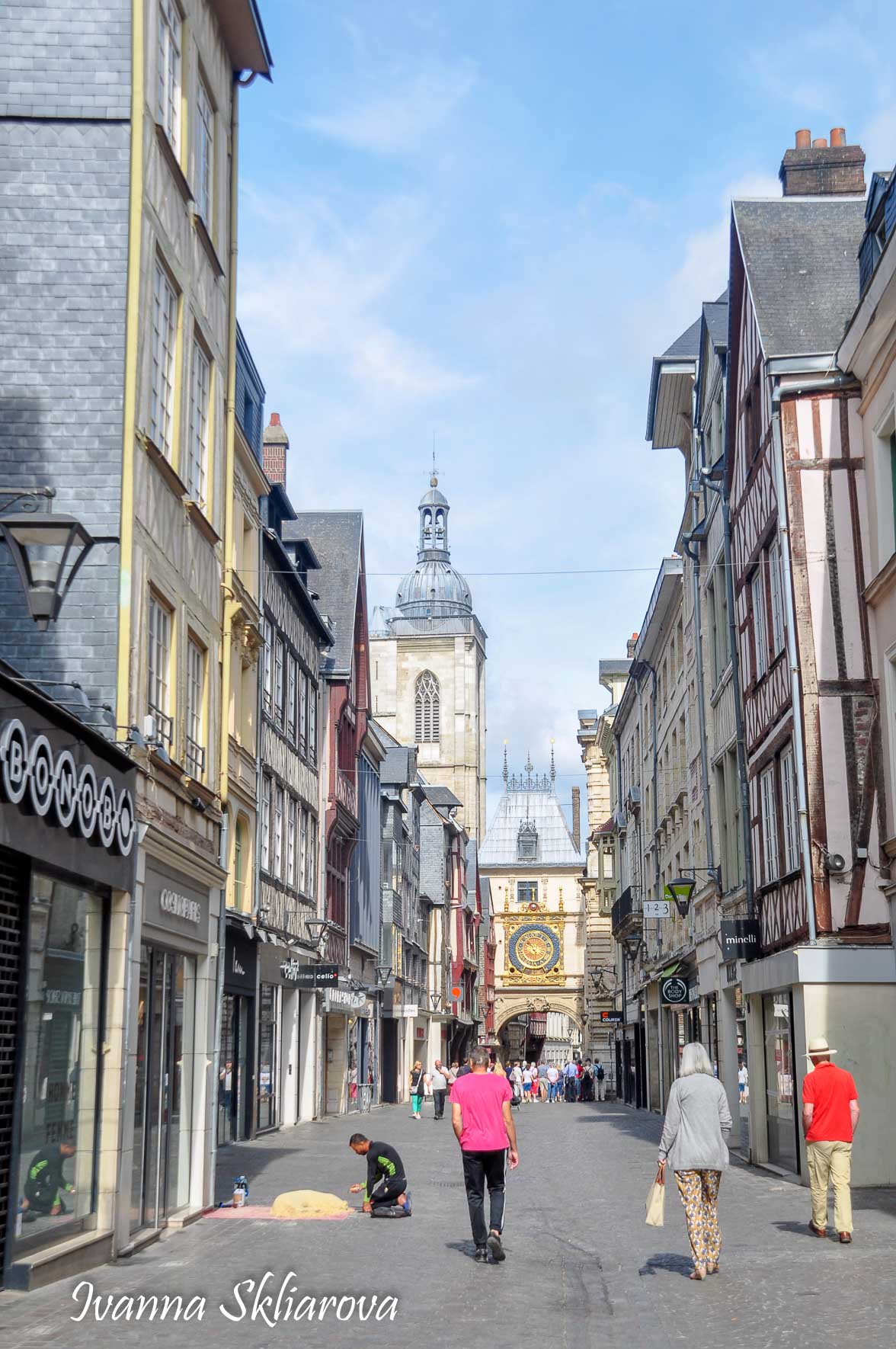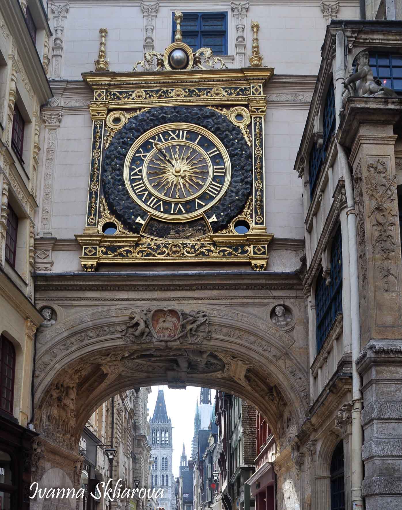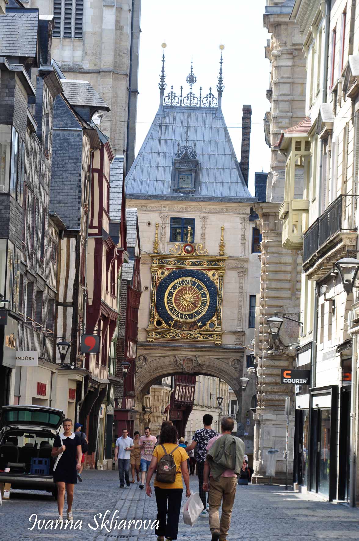 Велика вежа з годинником — один з головних символів Руана. Готична дзвіниця була побудована в 1389 році для оборонних цілей, а астрономічний годинник датуються 1889 роком. Цікаво, що годинник досі виконує свої функцію. Церква Сен-Маклу — перлина готичної архітектури, розташована в декількох хвилинах ходьби від кафедрального собору. Була побудована в 1437 році й присвячена бретонському покровителю. Церква має примітної готичний фасад і структуру. Дерев’яні двері епохи Ренесансу химерно прикрашені біблійними сюжетами.