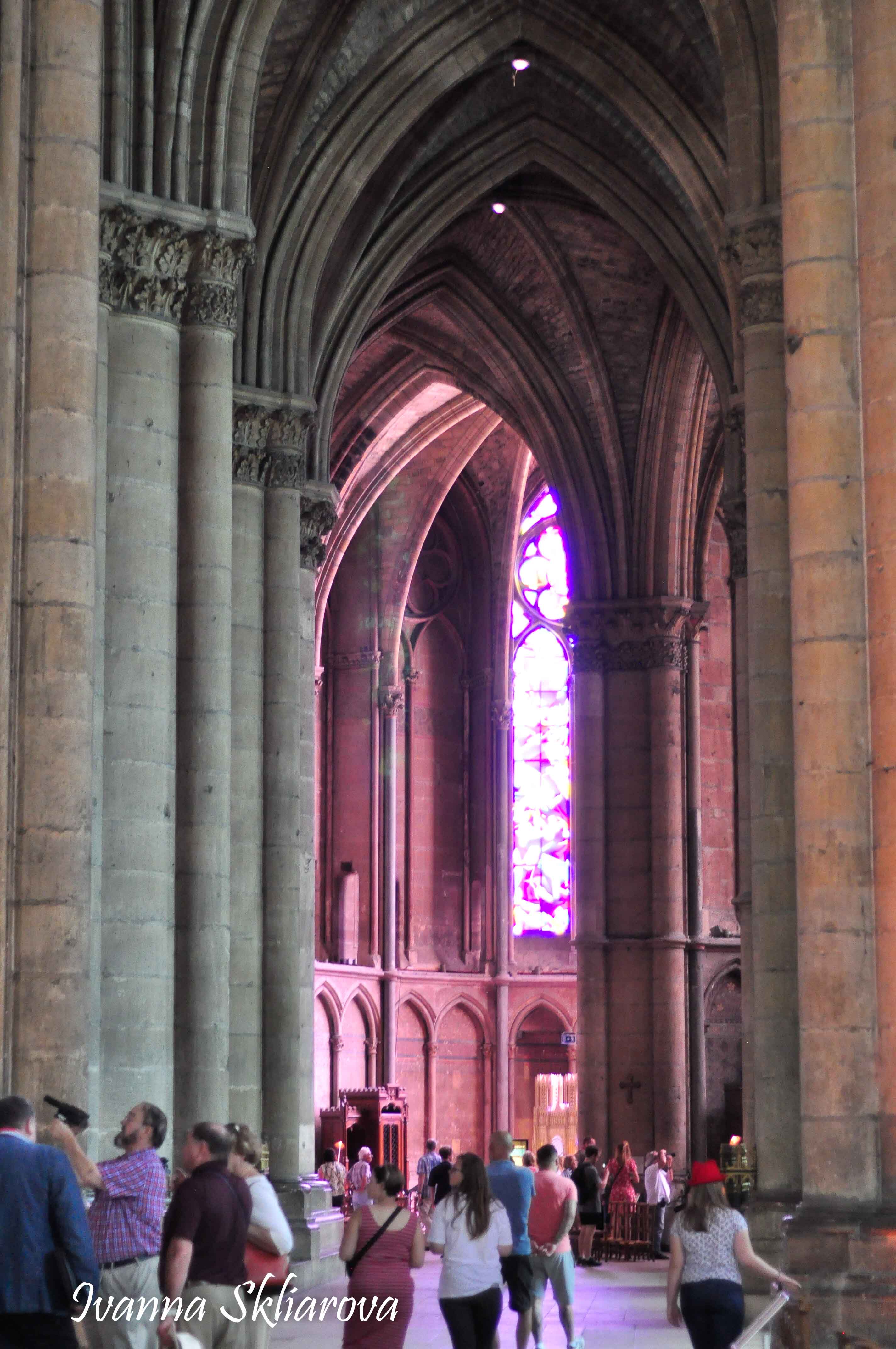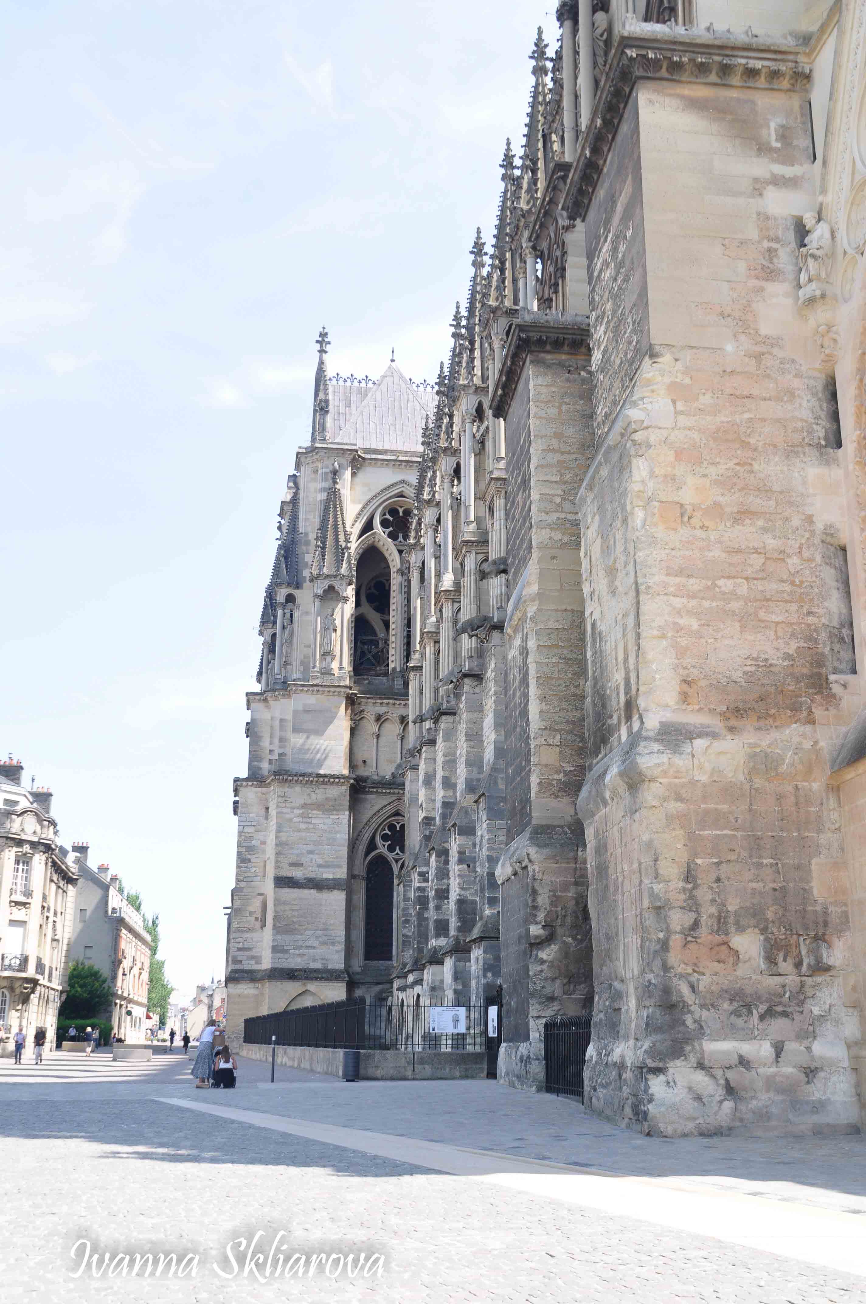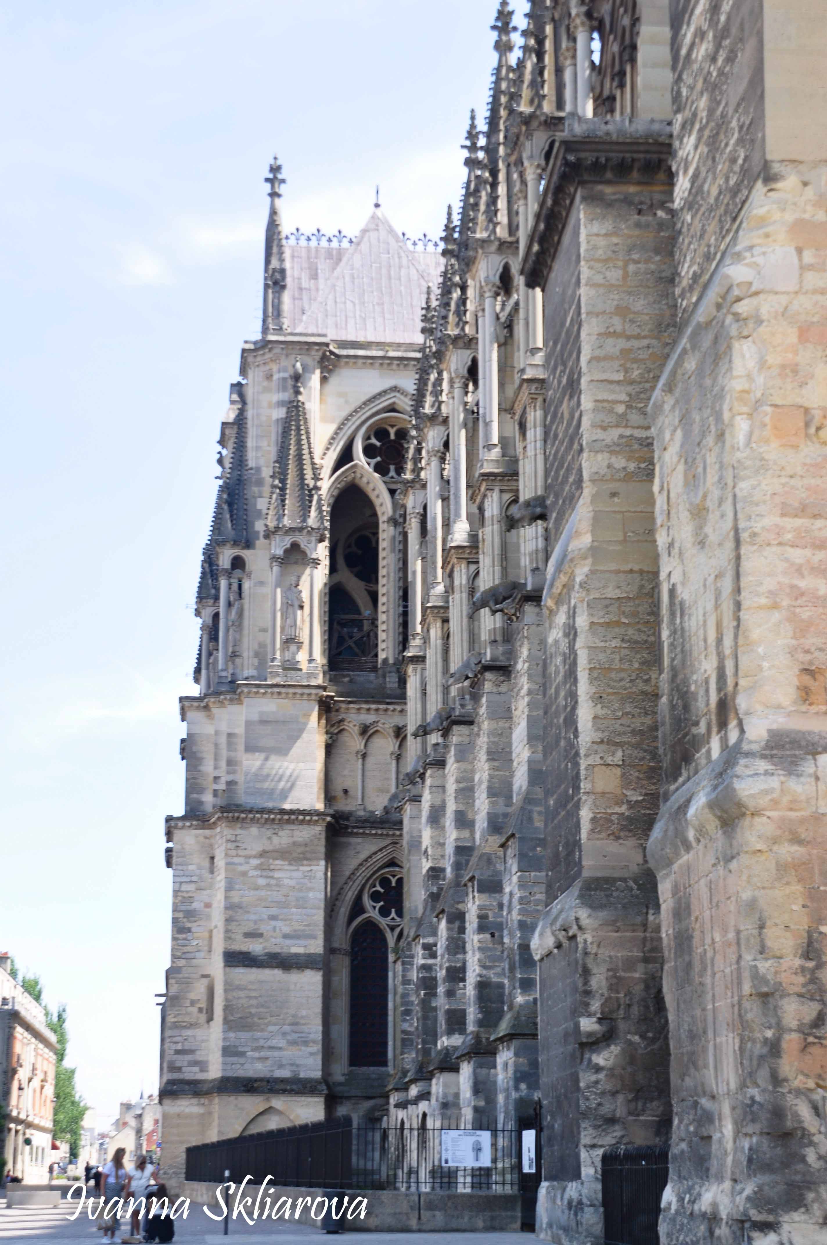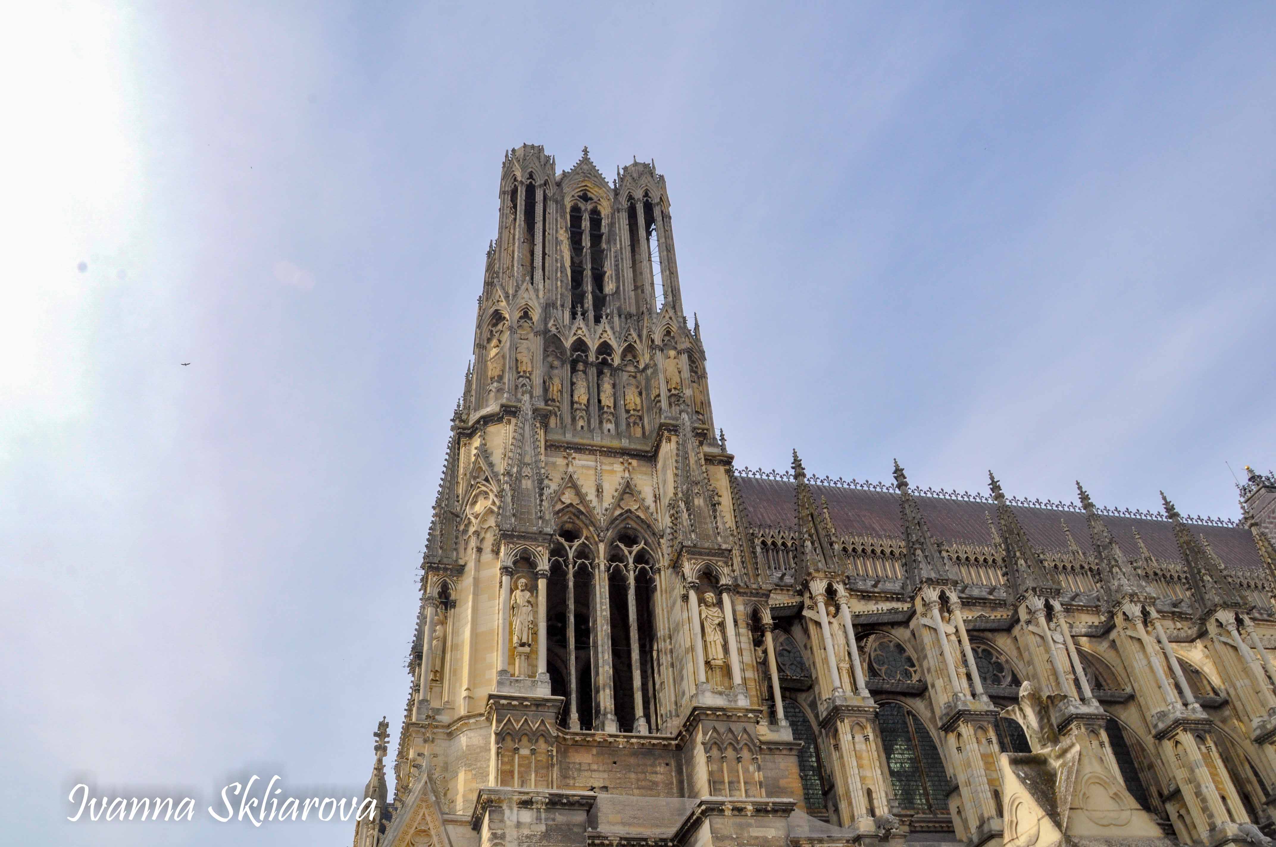 У ХІІ ст. тут була коронована дочка Великого князя київського Ярослава Мудрого – Анна Ярославна, перша жінка в історії Франції, удостоєна такої честі. У 1429 році, незважаючи на облогу міста англійцями, Жанна д’Арк допомогла провести в собор для коронації короля Карла VІІ. В пам’ять про цю подію в соборі зберігається бронзова статуя Орлеанської діви в обладунках роботи Проспера д’Епіне. У 1211 році собор був зруйнований пожежею. Його відбудова тривала майже 65 років, до 1275-го. Тільки тому він поступається за віком знаному на весь світ Нотр Дам де Парі. Та попри все кафедральний собор Реймса – один із найвитонченіших зразків середньовічної французької готики.