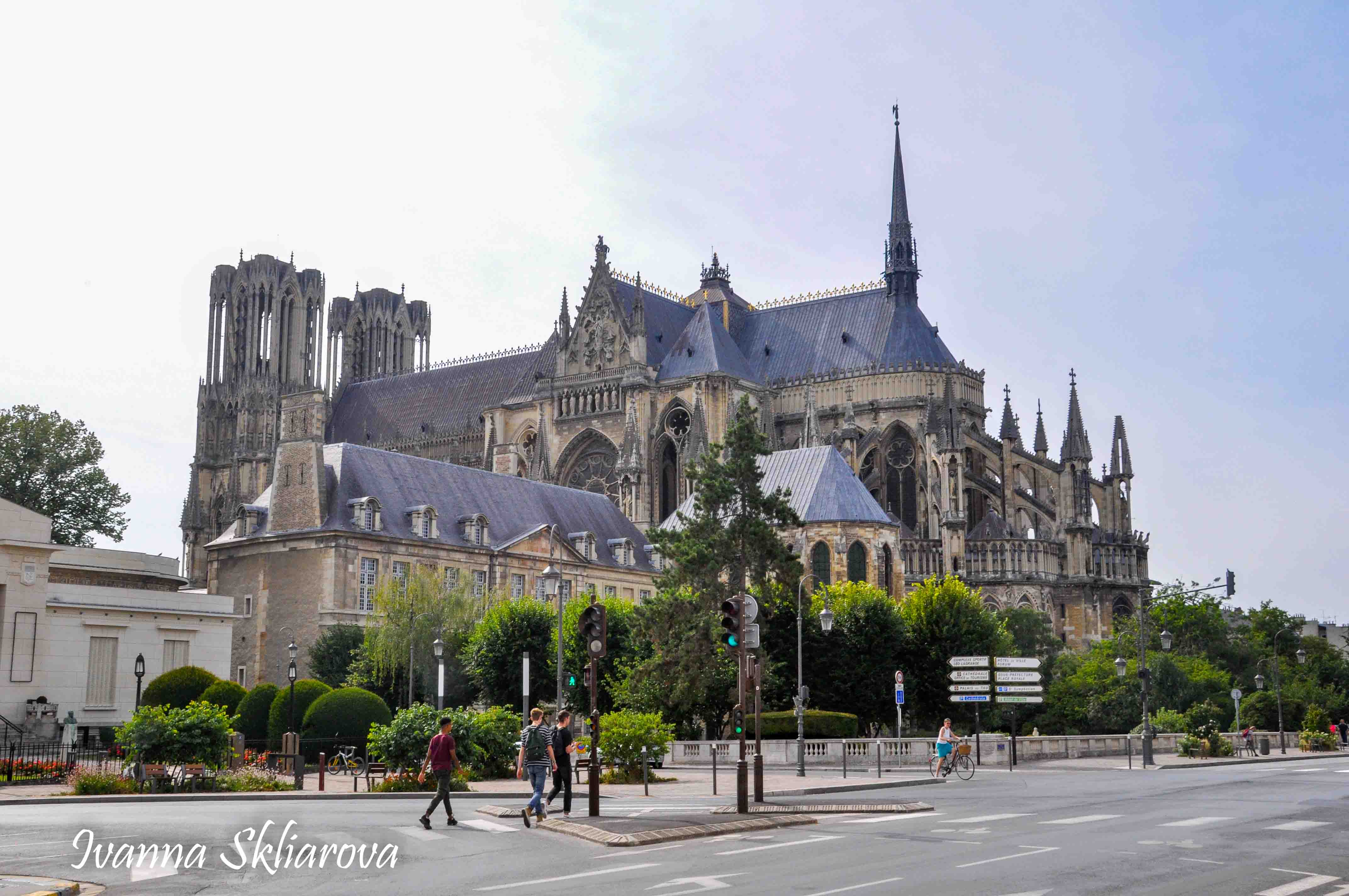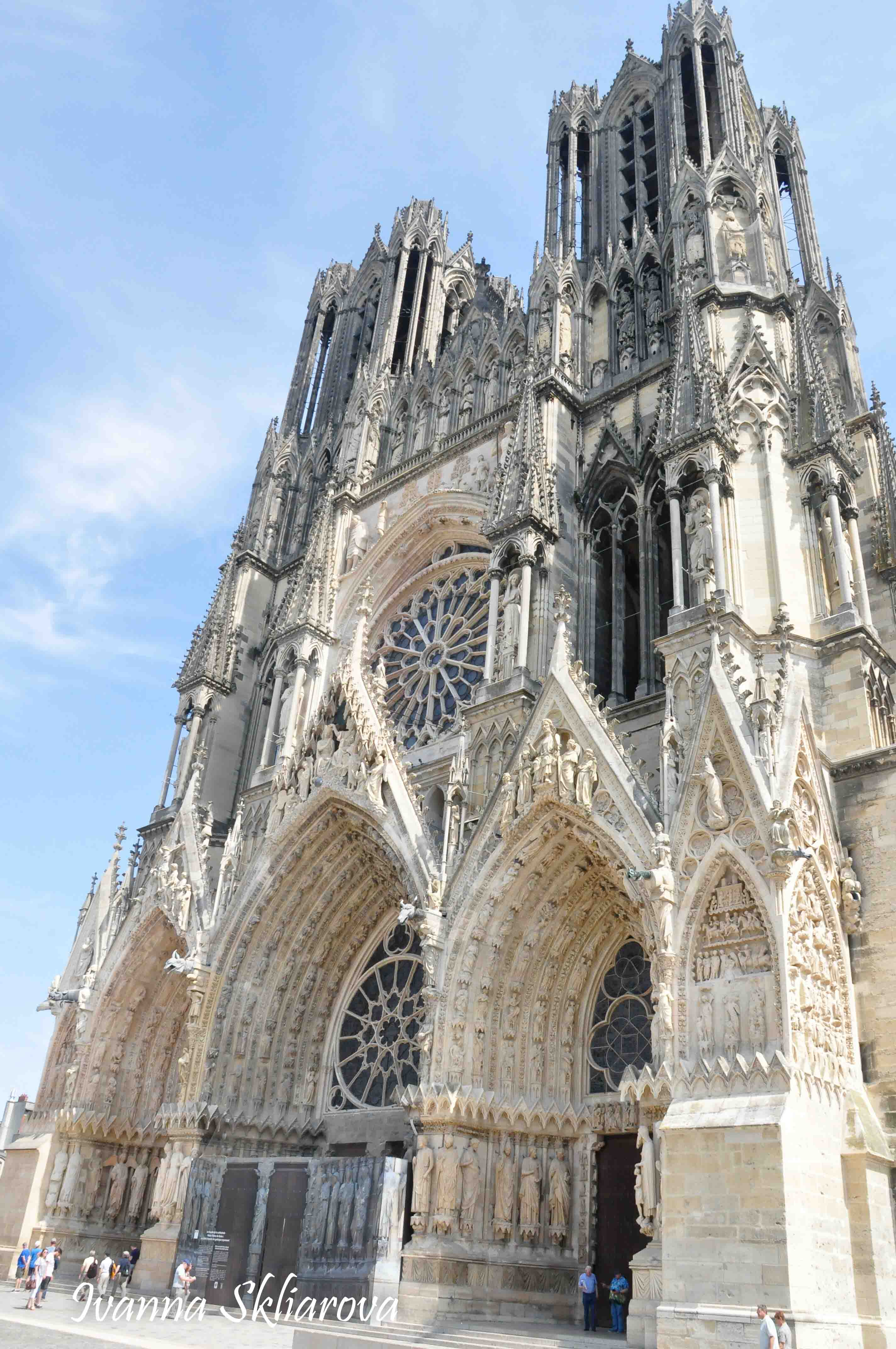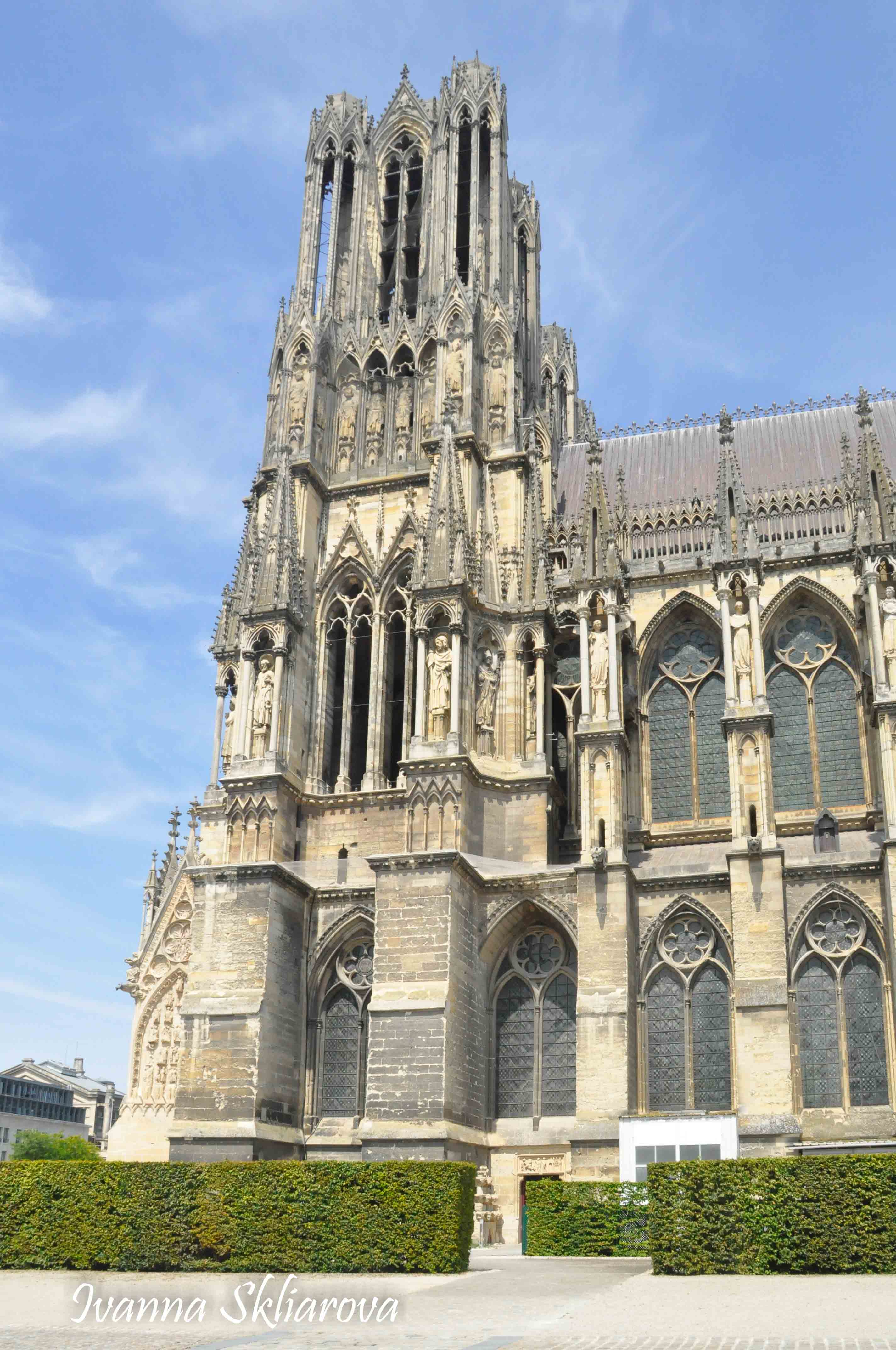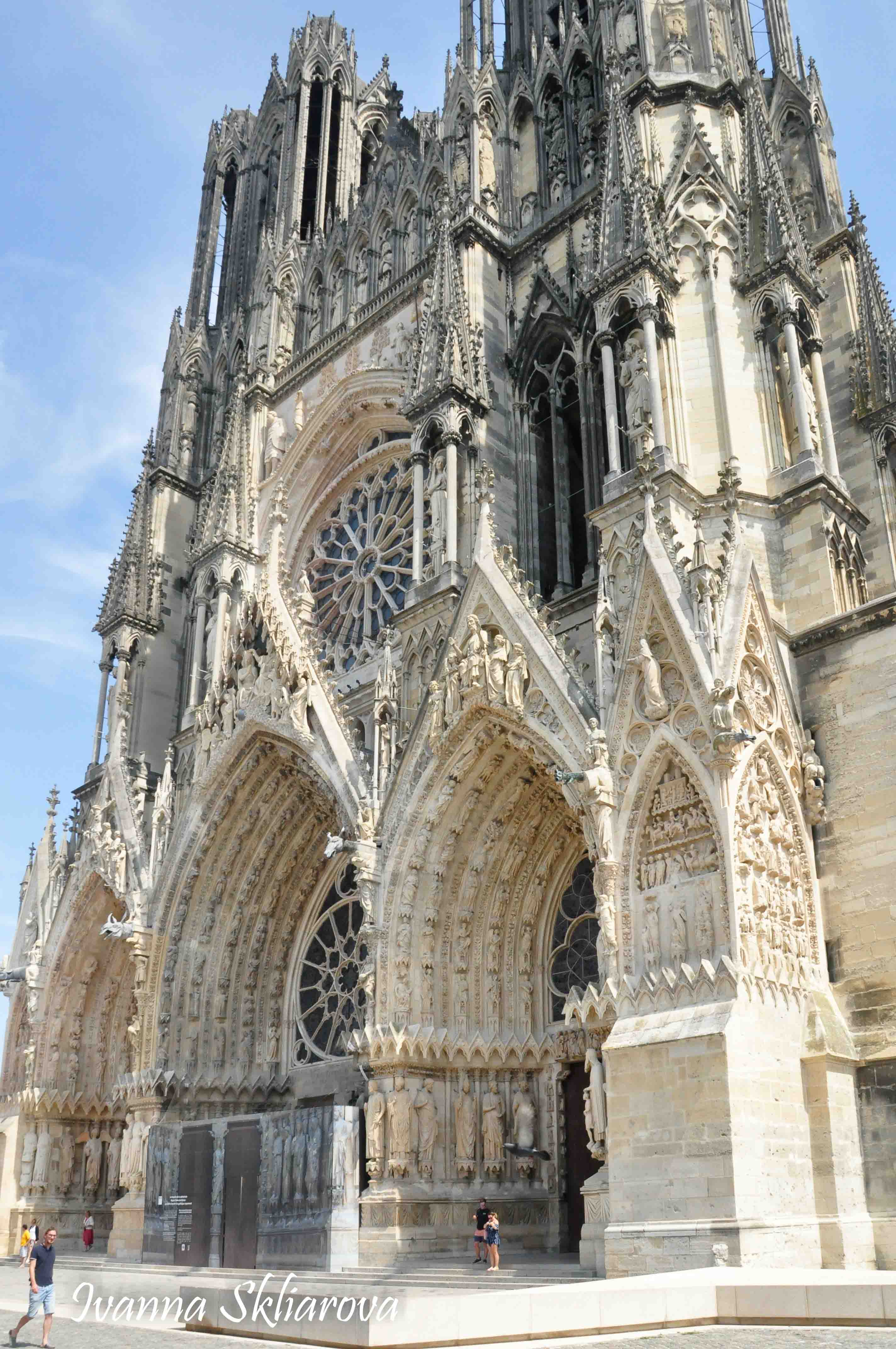 У ХІІ ст. тут була коронована дочка Великого князя київського Ярослава Мудрого – Анна Ярославна, перша жінка в історії Франції, удостоєна такої честі. У 1429 році, незважаючи на облогу міста англійцями, Жанна д’Арк допомогла провести в собор для коронації короля Карла VІІ. В пам’ять про цю подію в соборі зберігається бронзова статуя Орлеанської діви в обладунках роботи Проспера д’Епіне. У 1211 році собор був зруйнований пожежею. Його відбудова тривала майже 65 років, до 1275-го. Тільки тому він поступається за віком знаному на весь світ Нотр Дам де Парі. Та попри все кафедральний собор Реймса – один із найвитонченіших зразків середньовічної французької готики.