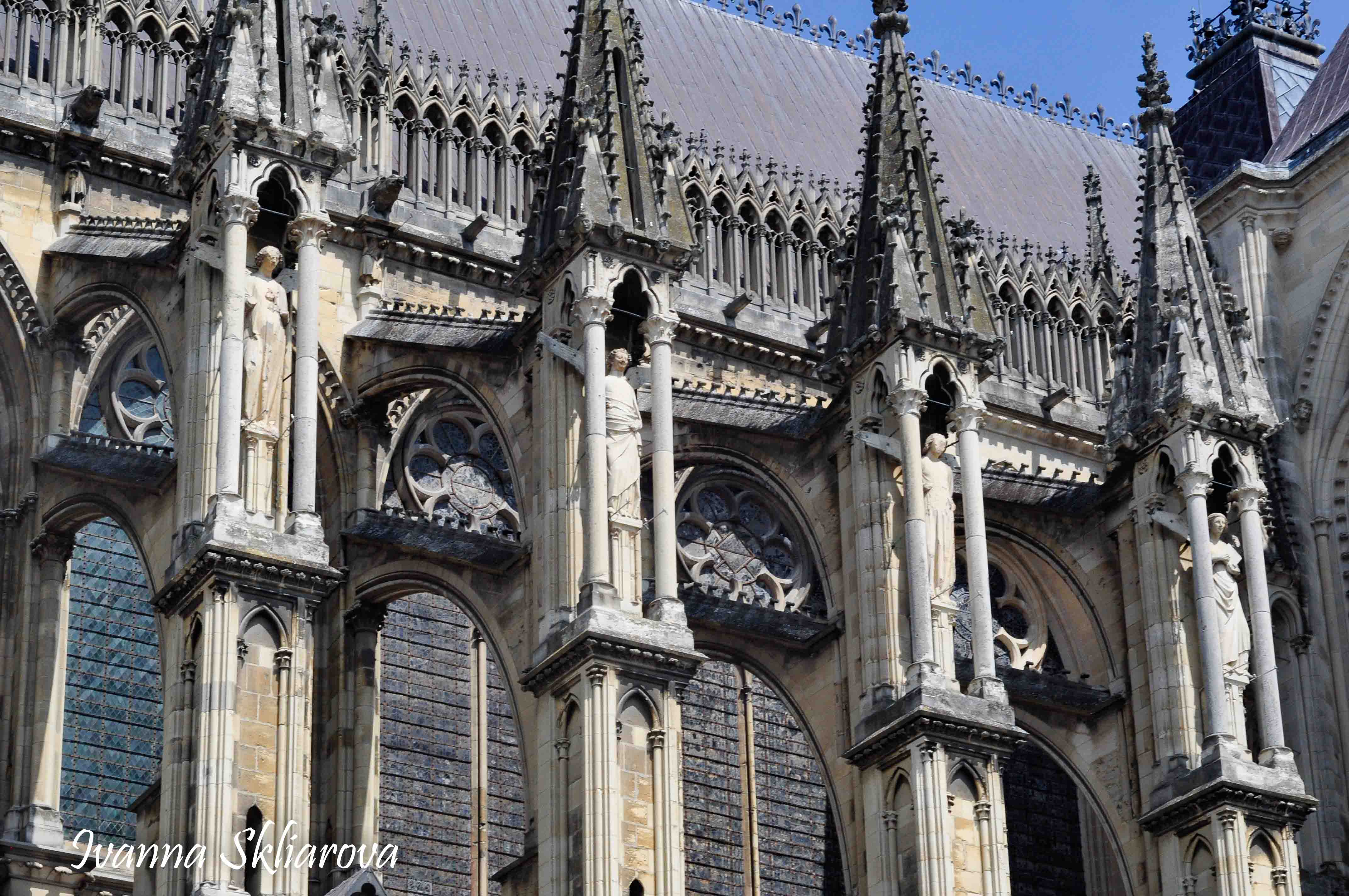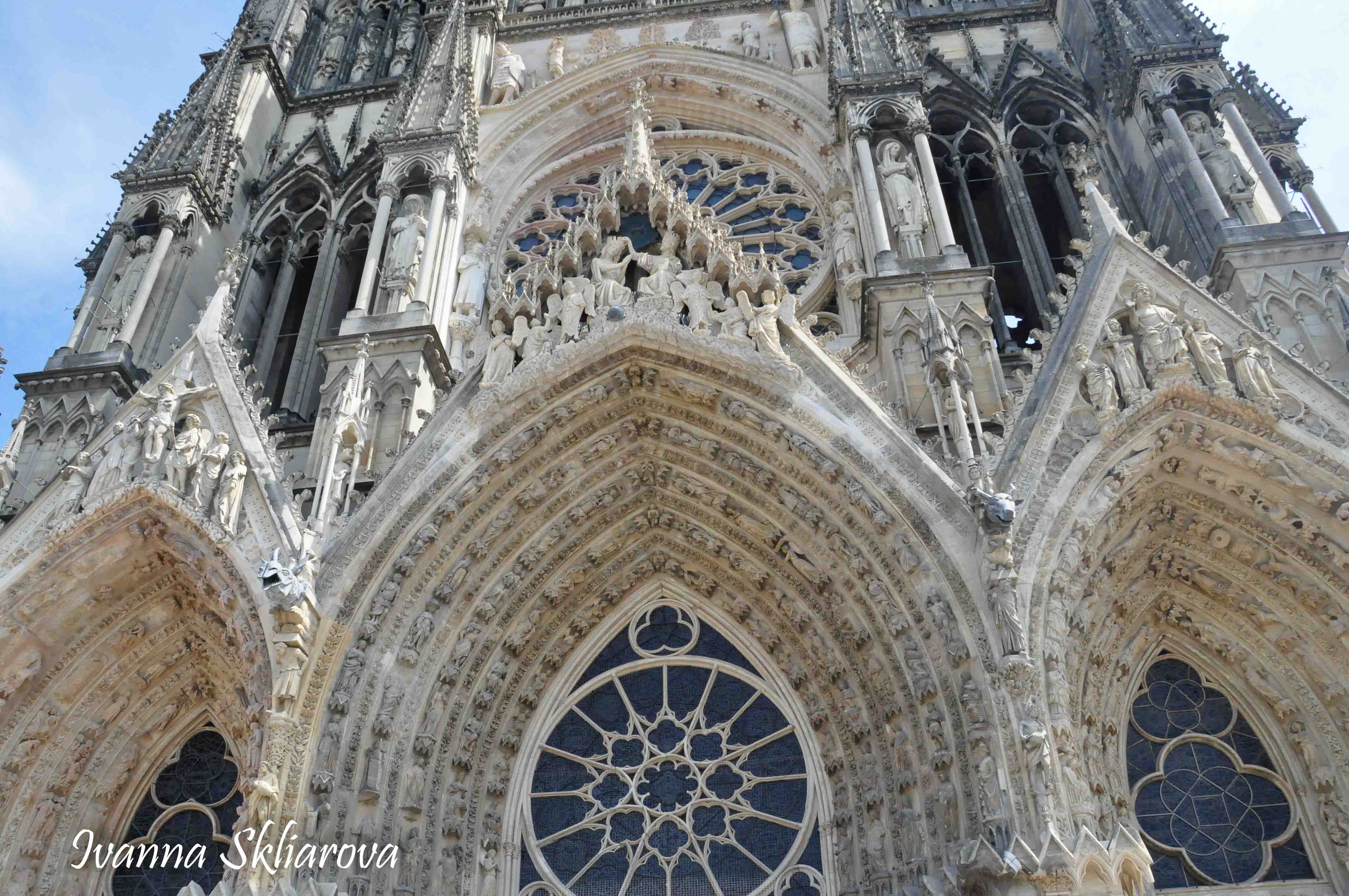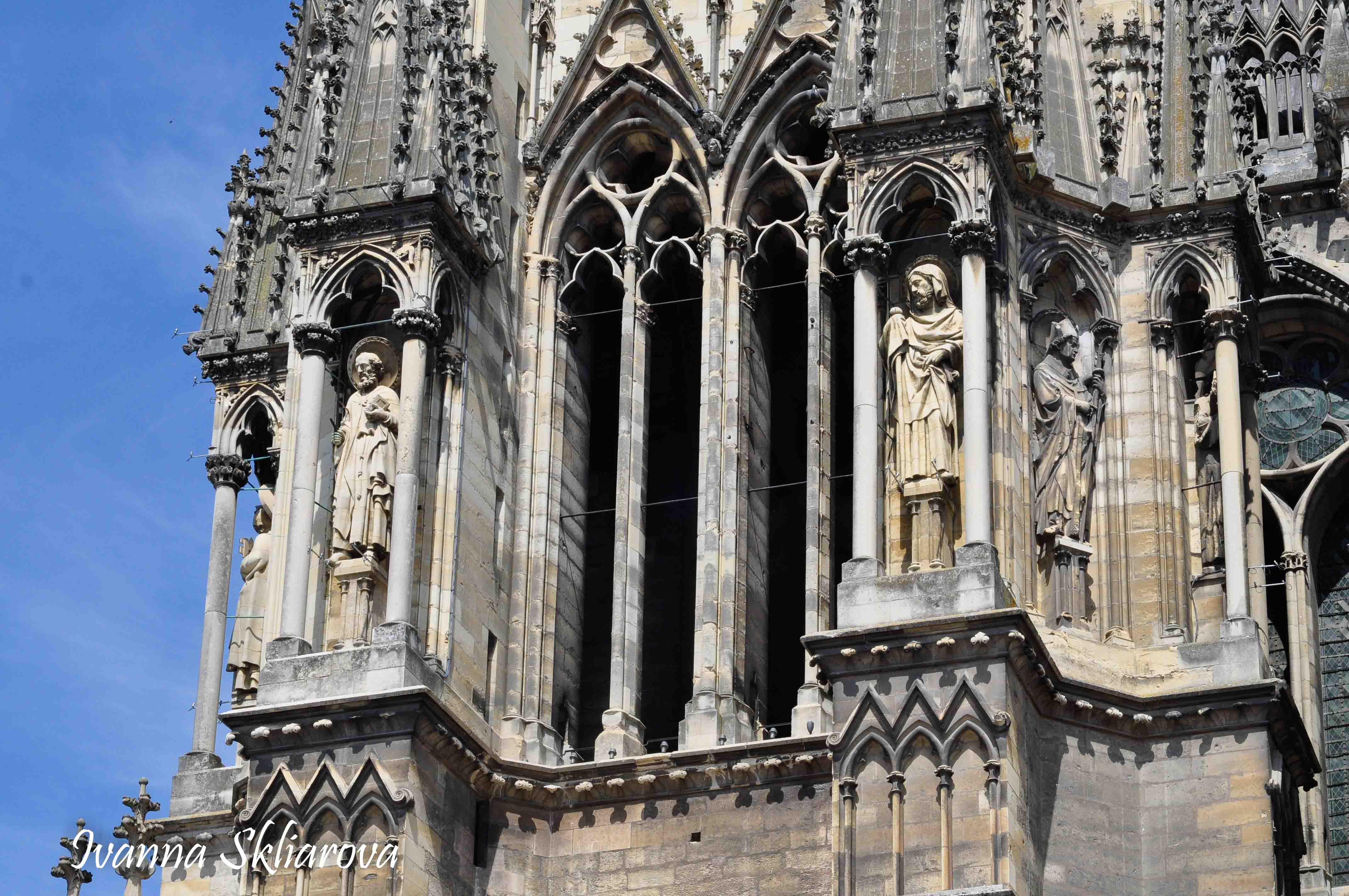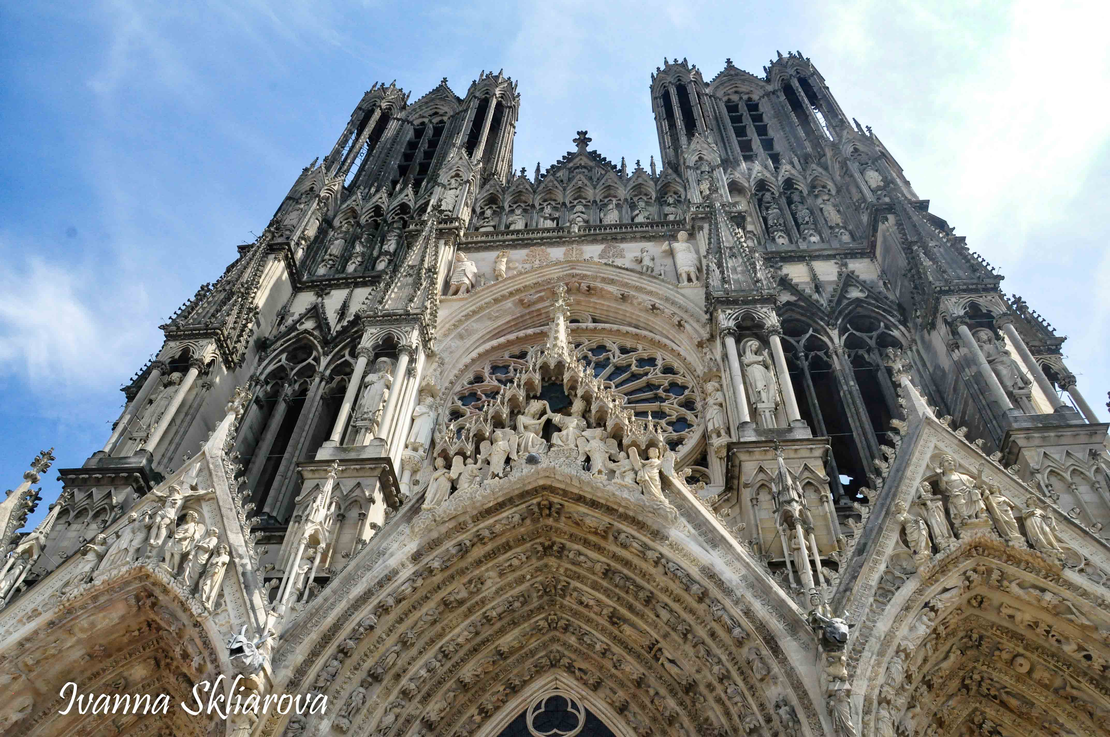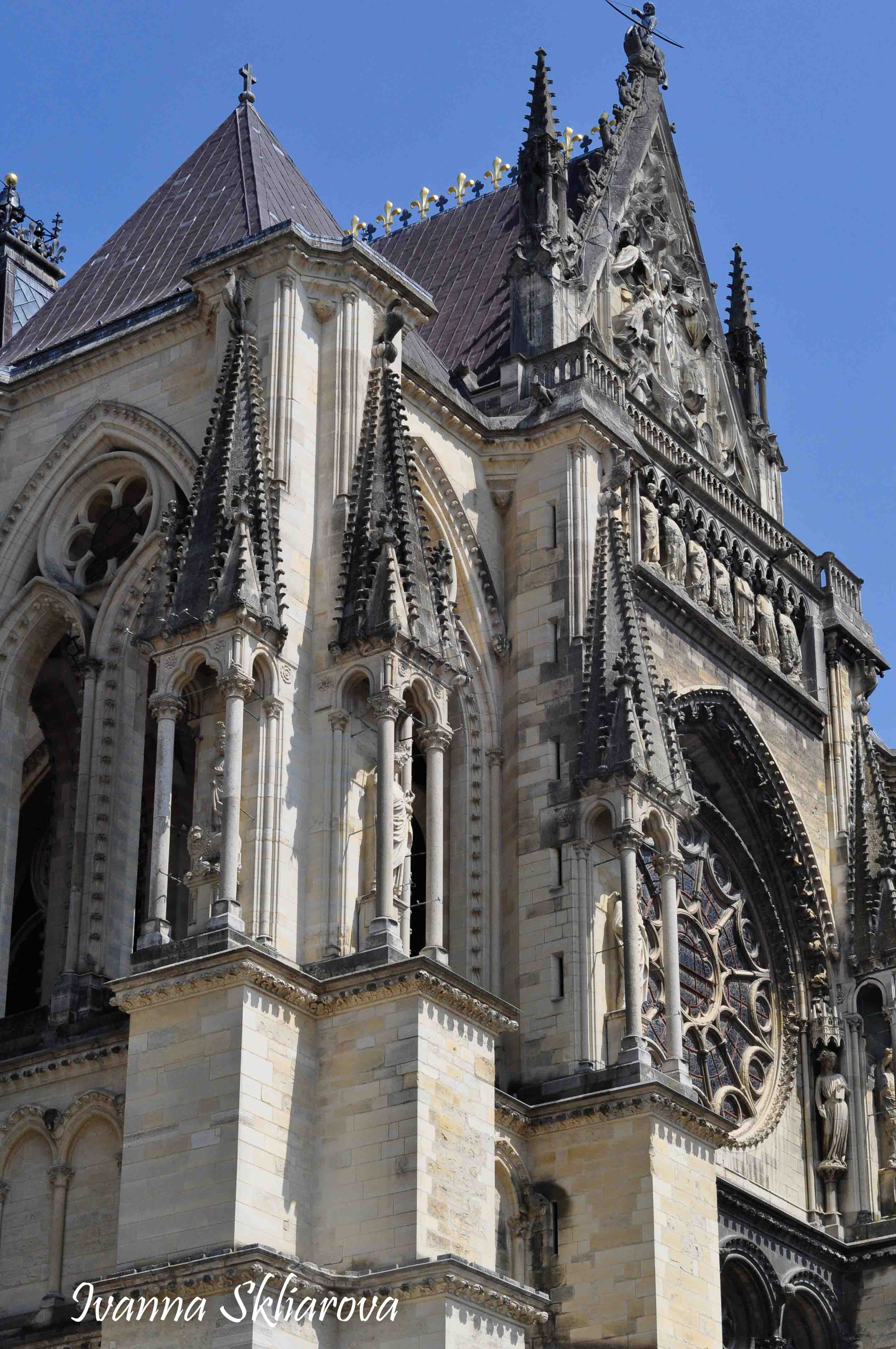 У ХІІ ст. тут була коронована дочка Великого князя київського Ярослава Мудрого – Анна Ярославна, перша жінка в історії Франції, удостоєна такої честі. У 1429 році, незважаючи на облогу міста англійцями, Жанна д’Арк допомогла провести в собор для коронації короля Карла VІІ. В пам’ять про цю подію в соборі зберігається бронзова статуя Орлеанської діви в обладунках роботи Проспера д’Епіне. У 1211 році собор був зруйнований пожежею. Його відбудова тривала майже 65 років, до 1275-го. Тільки тому він поступається за віком знаному на весь світ Нотр Дам де Парі. Та попри все кафедральний собор Реймса – один із найвитонченіших зразків середньовічної французької готики.