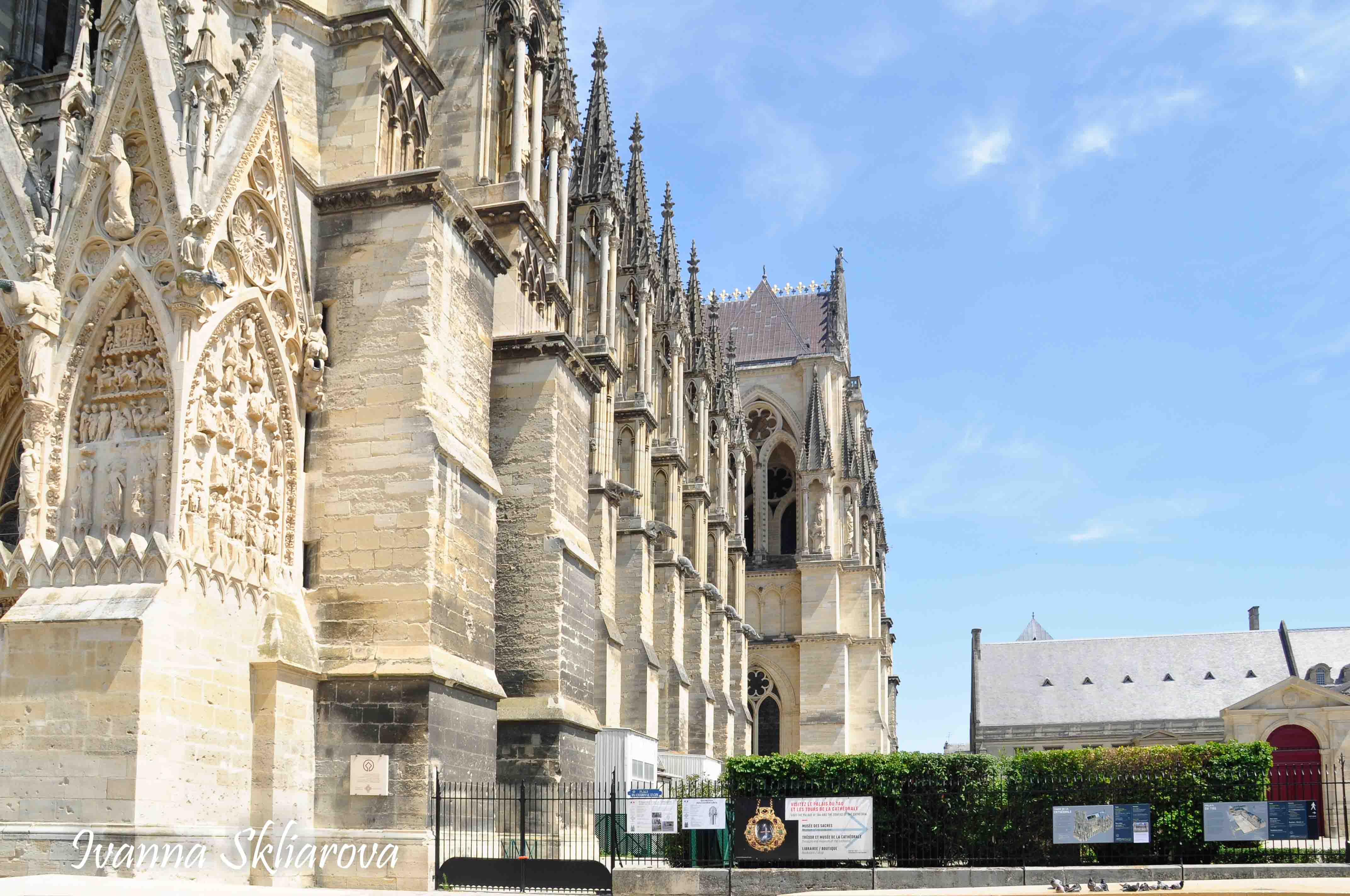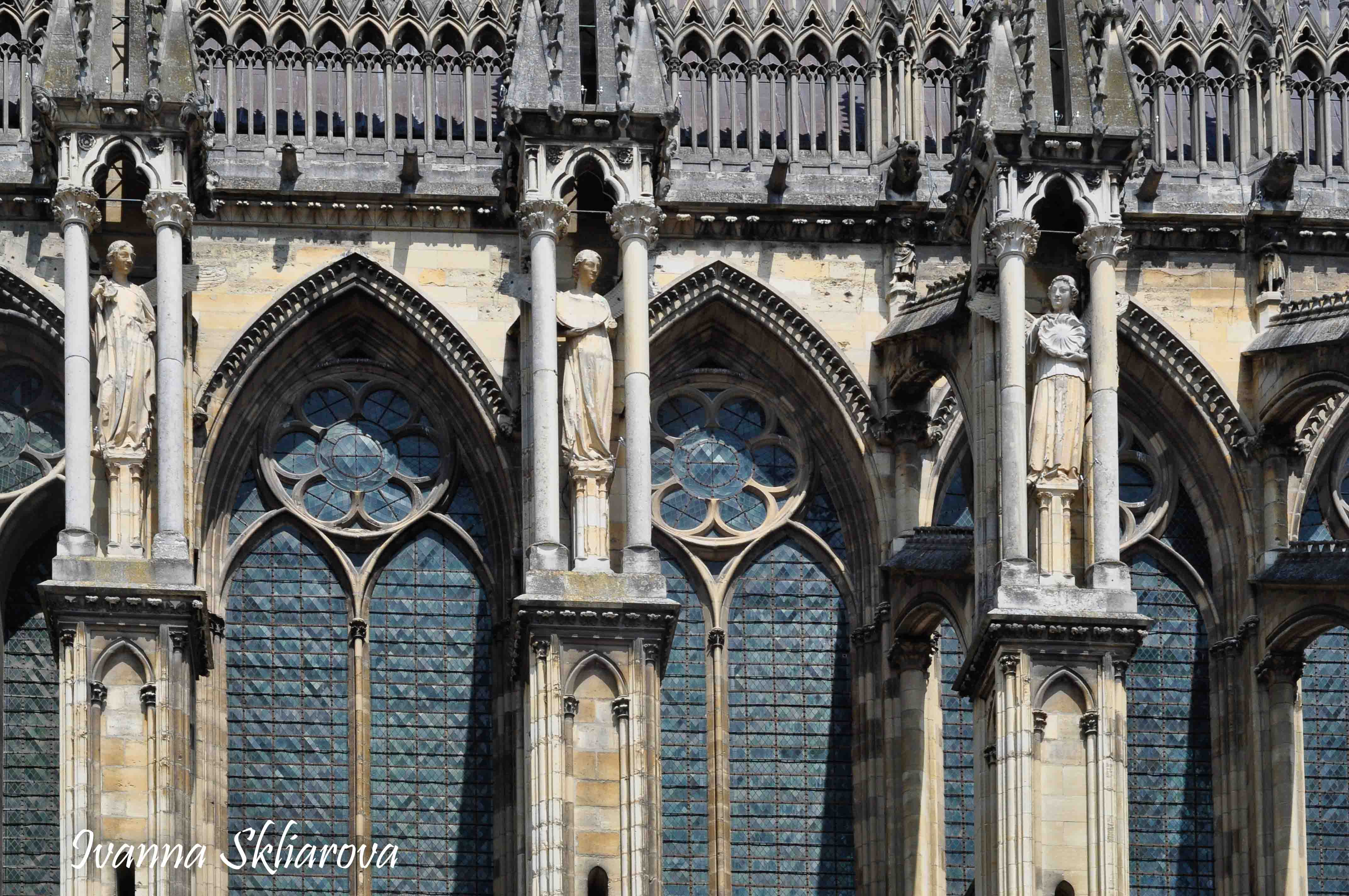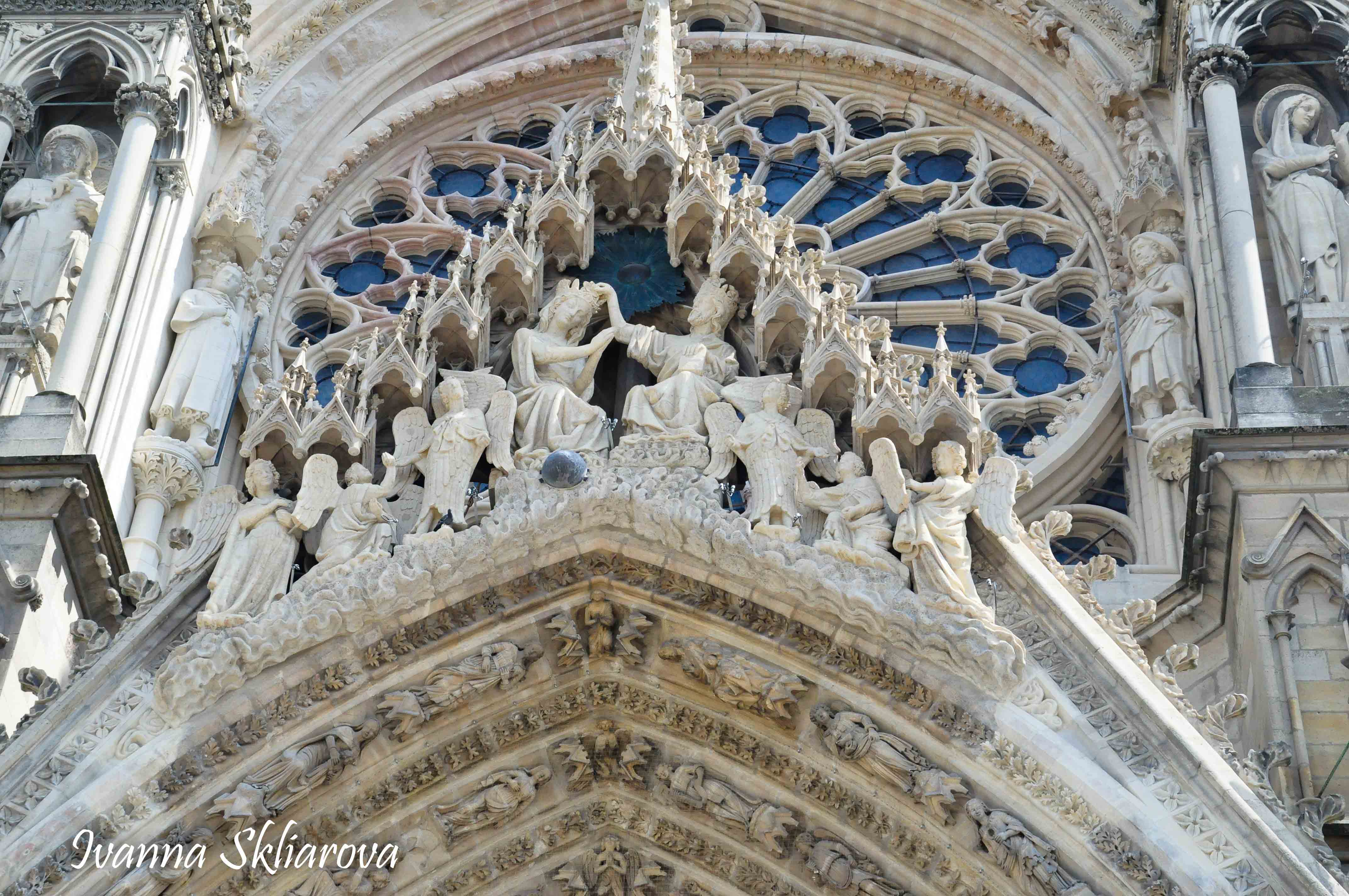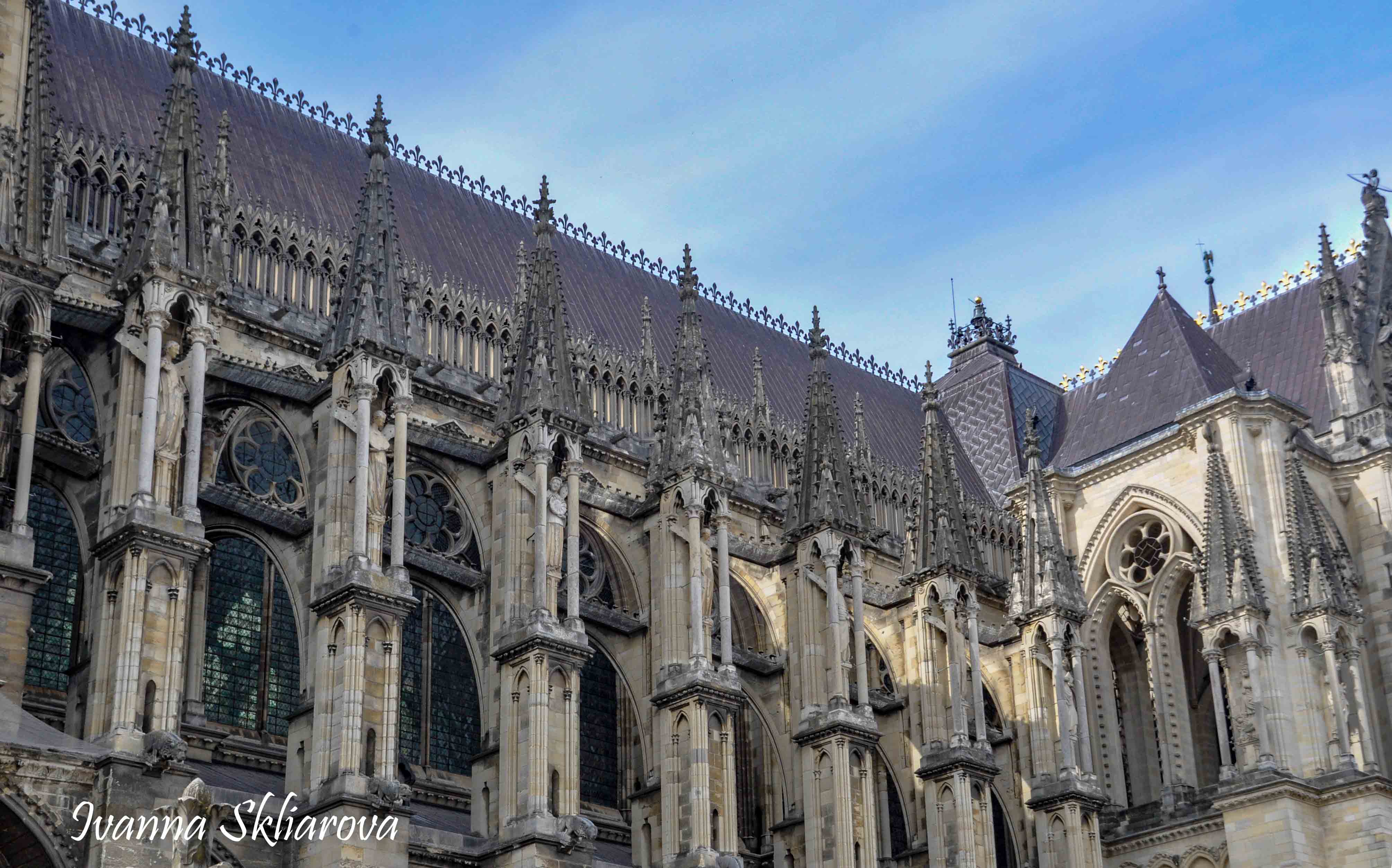 У ХІІ ст. тут була коронована дочка Великого князя київського Ярослава Мудрого – Анна Ярославна, перша жінка в історії Франції, удостоєна такої честі. У 1429 році, незважаючи на облогу міста англійцями, Жанна д’Арк допомогла провести в собор для коронації короля Карла VІІ. В пам’ять про цю подію в соборі зберігається бронзова статуя Орлеанської діви в обладунках роботи Проспера д’Епіне. У 1211 році собор був зруйнований пожежею. Його відбудова тривала майже 65 років, до 1275-го. Тільки тому він поступається за віком знаному на весь світ Нотр Дам де Парі. Та попри все кафедральний собор Реймса – один із найвитонченіших зразків середньовічної французької готики.