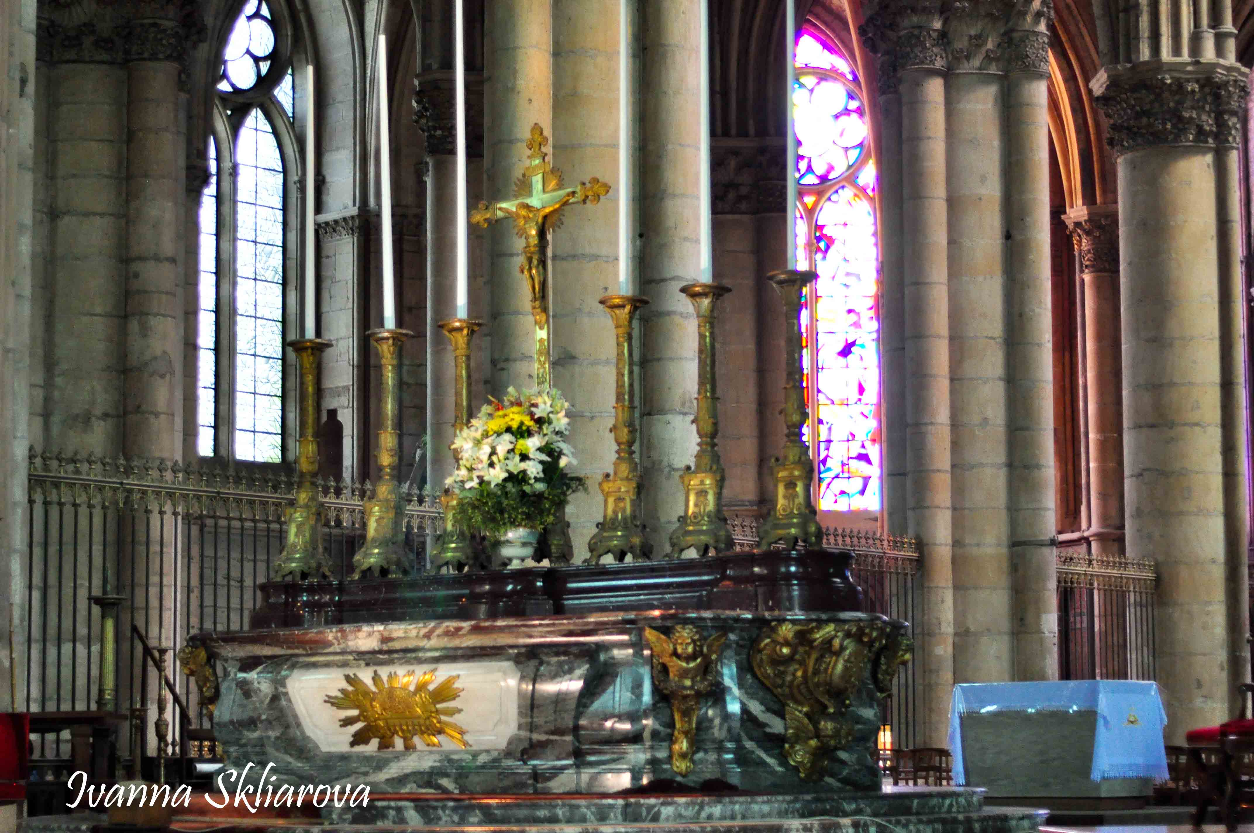 У 1574 році в Реймському кафедральному соборі опинилося старовинне Євангеліє церковнослов’янською мовою – Реймське Євангеліє. Як припускають учені, книгу могла привезти до Франції дочка князя Ярослава Мудрого Анна Ярославна, яка в 1044 році вийшла заміж за французького короля Генріха І. Філологи вважають, що ця писемна пам’ятка походить із українських земель – південного Підкарпаття. Рукопис унікальний тим, що на ньому під час коронацій складали присягу французькі королі. До сьогодні в Реймському соборі зберігається також ще одна велика святиня Франції – золота чаша для коронаційних церемоній, із якої причащалися новопоставлені монархи.