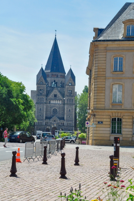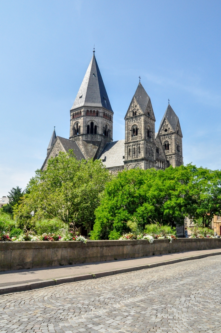 Церква Тампль-Неф є визначною пам'яткою міста Мец. Зведений протестантський храм був у 1903 році німецьким архітектором Конрадом Ваном у неоромантичному стилі. Прообразом храму виступив романський Шпаєрський собор, який був усипальницею німецько-римських імператорів. Як основний будівельний матеріал Ван визначив похмуро-сірий вогезький пісковик. Церква була освячена у 1904 році. Під час освячення церкви був присутній сам кайзер Вільгельм II.