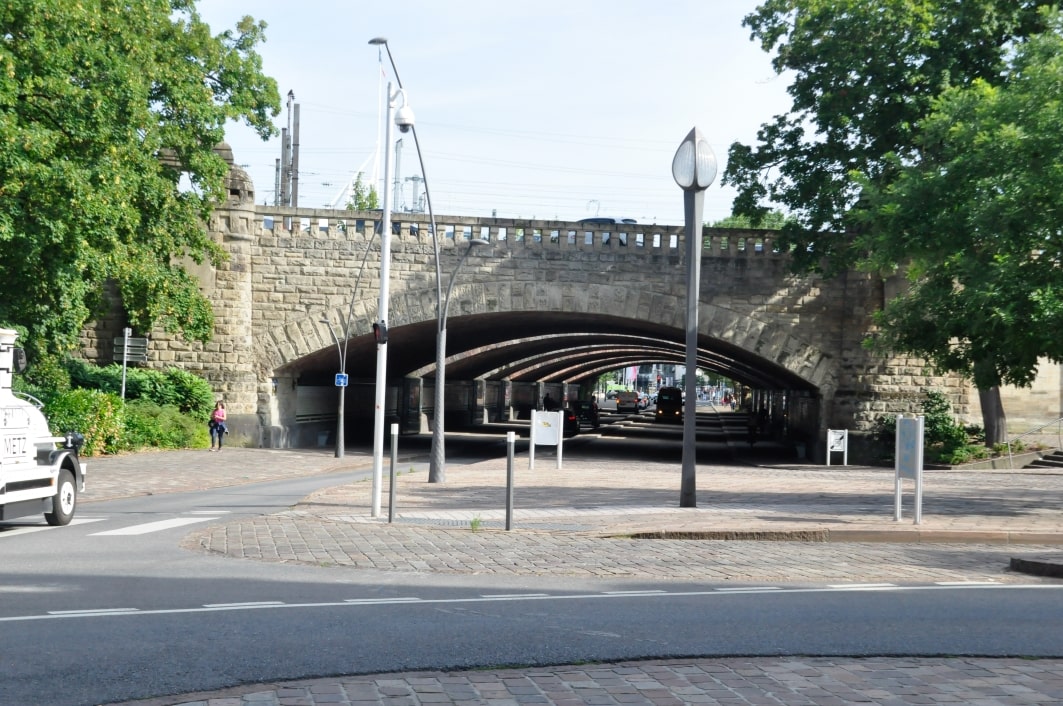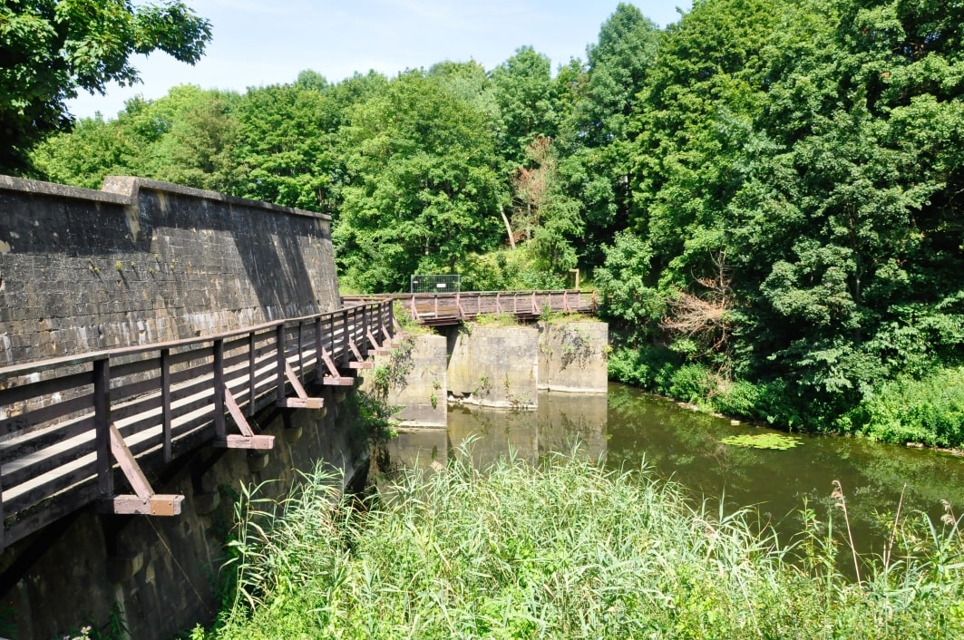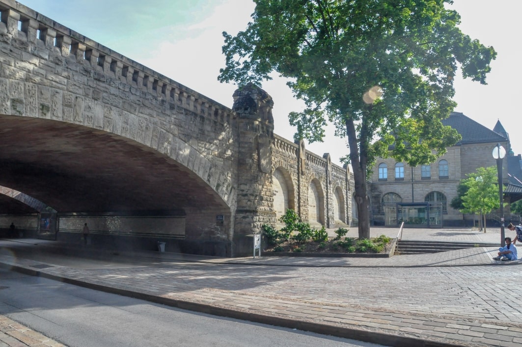 Будівництво міських укріплень почалося тут в 1230 році, а в 1445 для управління рухом по мосту були зведені ворота, що складалися з двох круглих веж, архітектурний вигляд яких був досить суворим, позбавленим великої кількості декоративних елементів, виключаючи невелику кількість зооморфних зображень. До наших днів дійшла лише ця частина фортечної стіни, загальна довжина якої сягала семи кілометрів, а товщина - 3,5 метра. На арці зберігся напис XVI століття, що зберіг згадку про ініціаторів будівництва та архітектора.