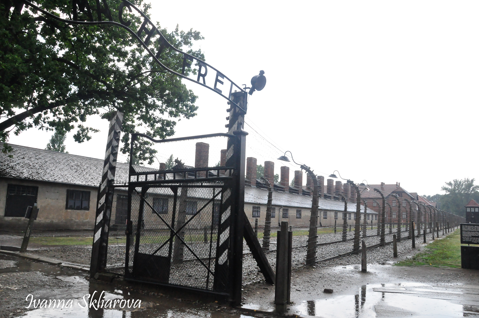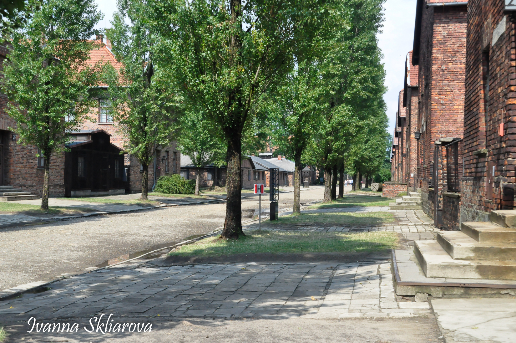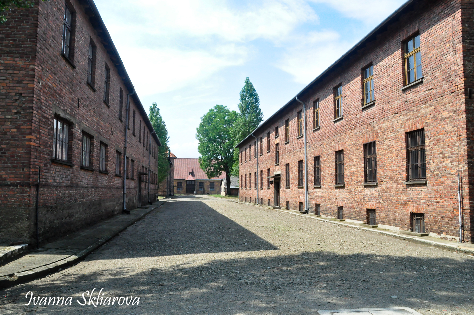 Брама - це було перше, що бачили новоприбулі в’язні. За огорожею, стояли ряди мурованих будинків, посередині яких виднівся розлогий майданчик. Новоприбулі розпочинали свій шлях головною алеєю табору.
