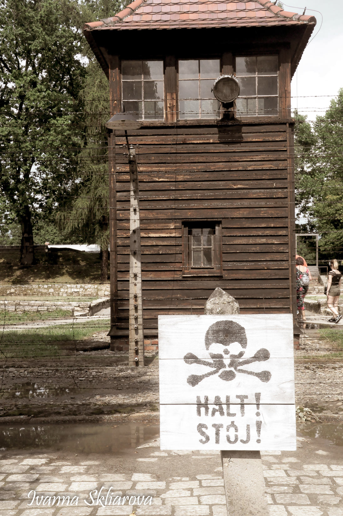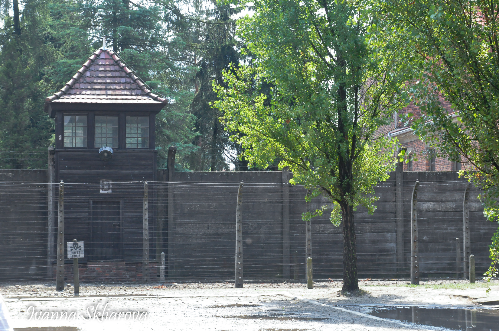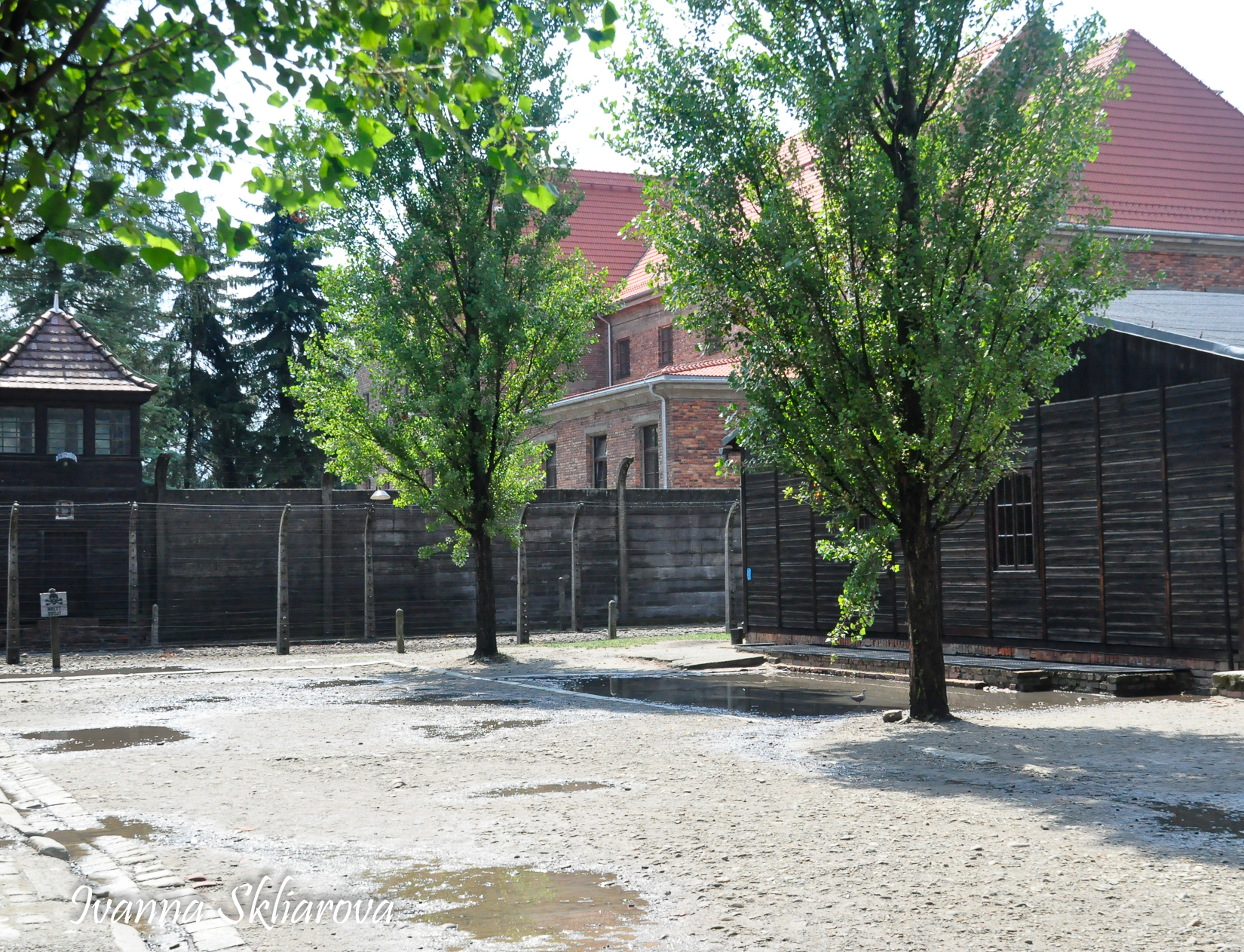 Брама - це було перше, що бачили новоприбулі в’язні. За огорожею, стояли ряди мурованих будинків, посередині яких виднівся розлогий майданчик. Новоприбулі розпочинали свій шлях головною алеєю табору.