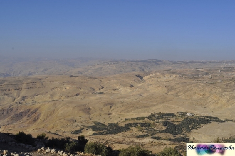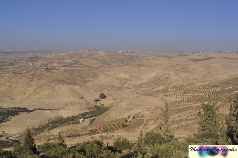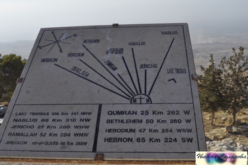 Звідси відкривається прекрасний вид на Мертве море, долину річки Йордан, занурений в зелень Єрихон, а при хорошій видимості і на Вифлеєм з Єрусалимом. На вершині знаходяться частково відреставровані руїни церкви, побудованої в 390 році, переробленої у візантійську базиліку в VI столітті. Усередині храму можна побачити мозаїки, що зображують землеробів, мисливські сцени і фігури тварин. Тут височіє великий металевий хрест, прикрашений змією, що обвилася навкруги. Територію на горі Небо в 1934 році отримали францисканці, що проводять тут археологічні дослідження.